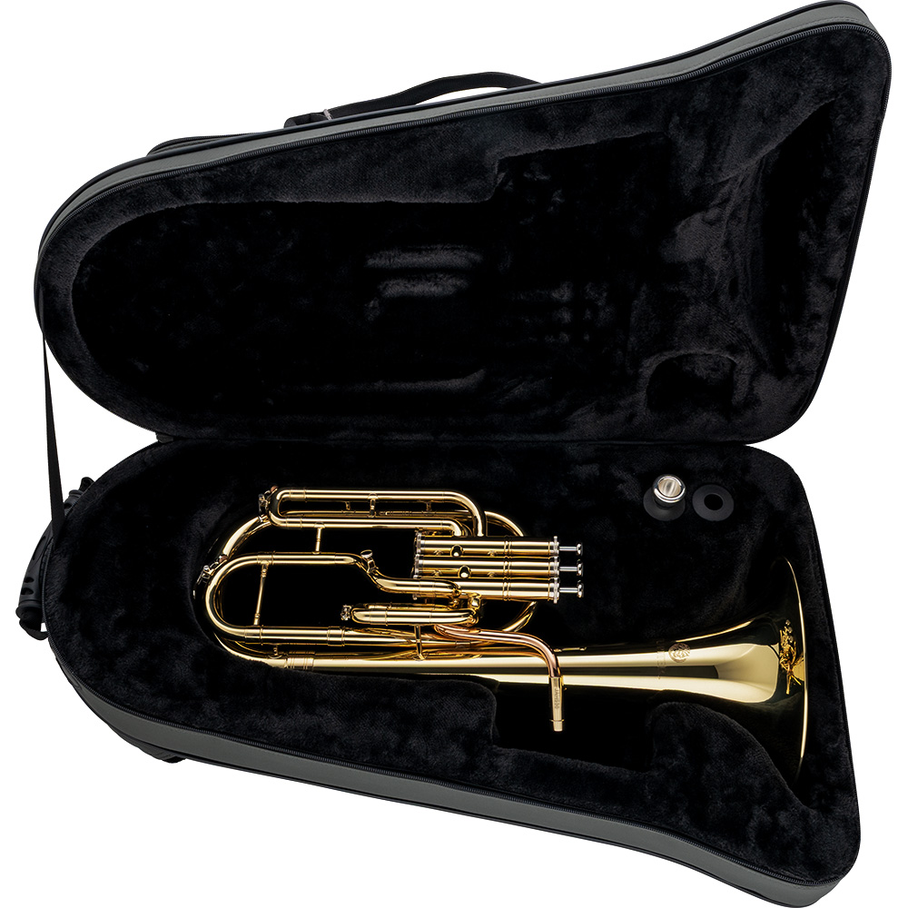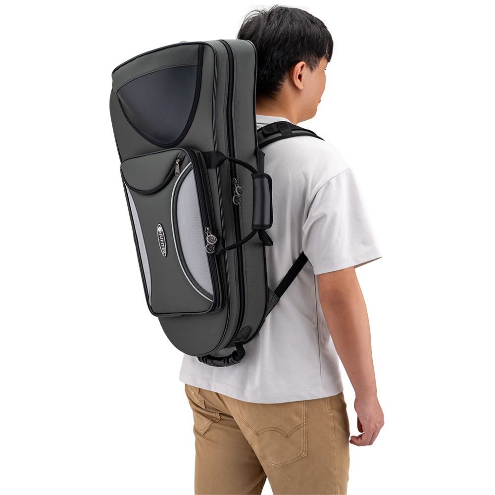 The JKC-AH50FQ Session Series Backpack Alto Horn case features a zippered closer, a zippered front pocket and two backpack straps for ease of travel.
